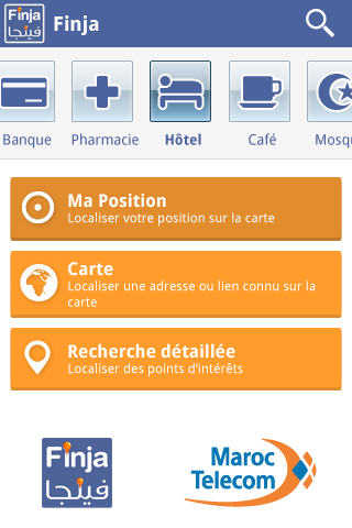 Finja est une application mobile de cartographie et de localisation d’adresses et de Points d’Intérêt (POI) conçue pour les clients de Maroc Telecom, elle fonctionne en mode natif (Android) et en HTML5.