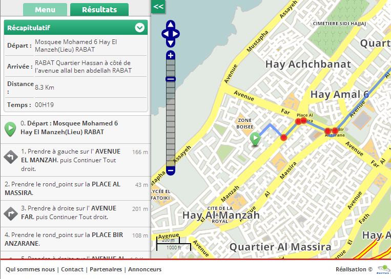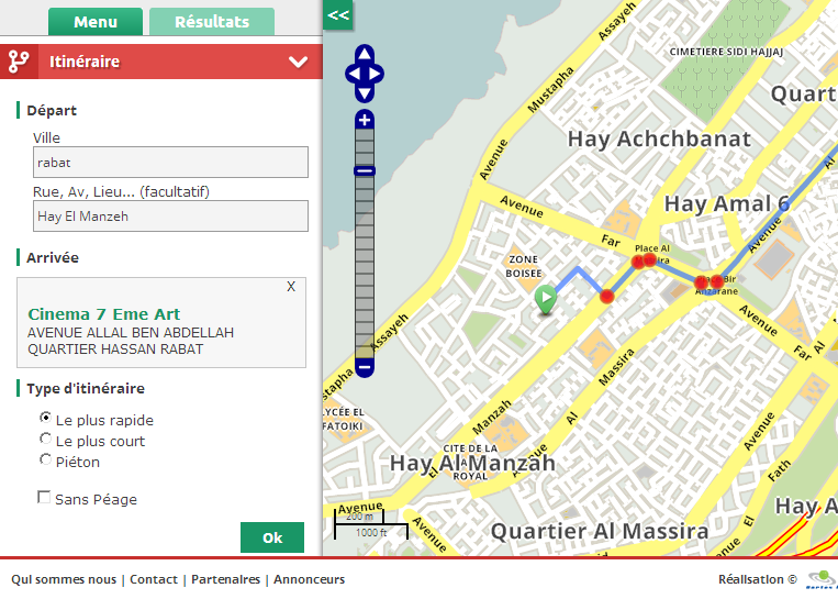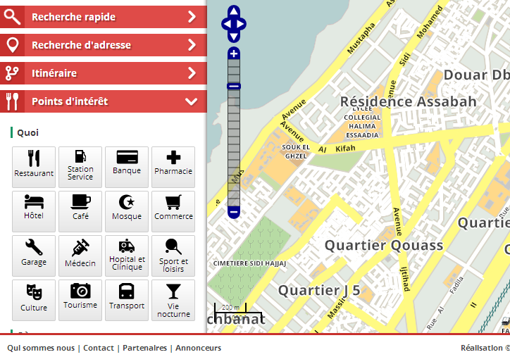 Le service MarocOu, vous facilite la recherche d’adresses et de Points d’intérêt et vous permet de visualiser les itinéraires.